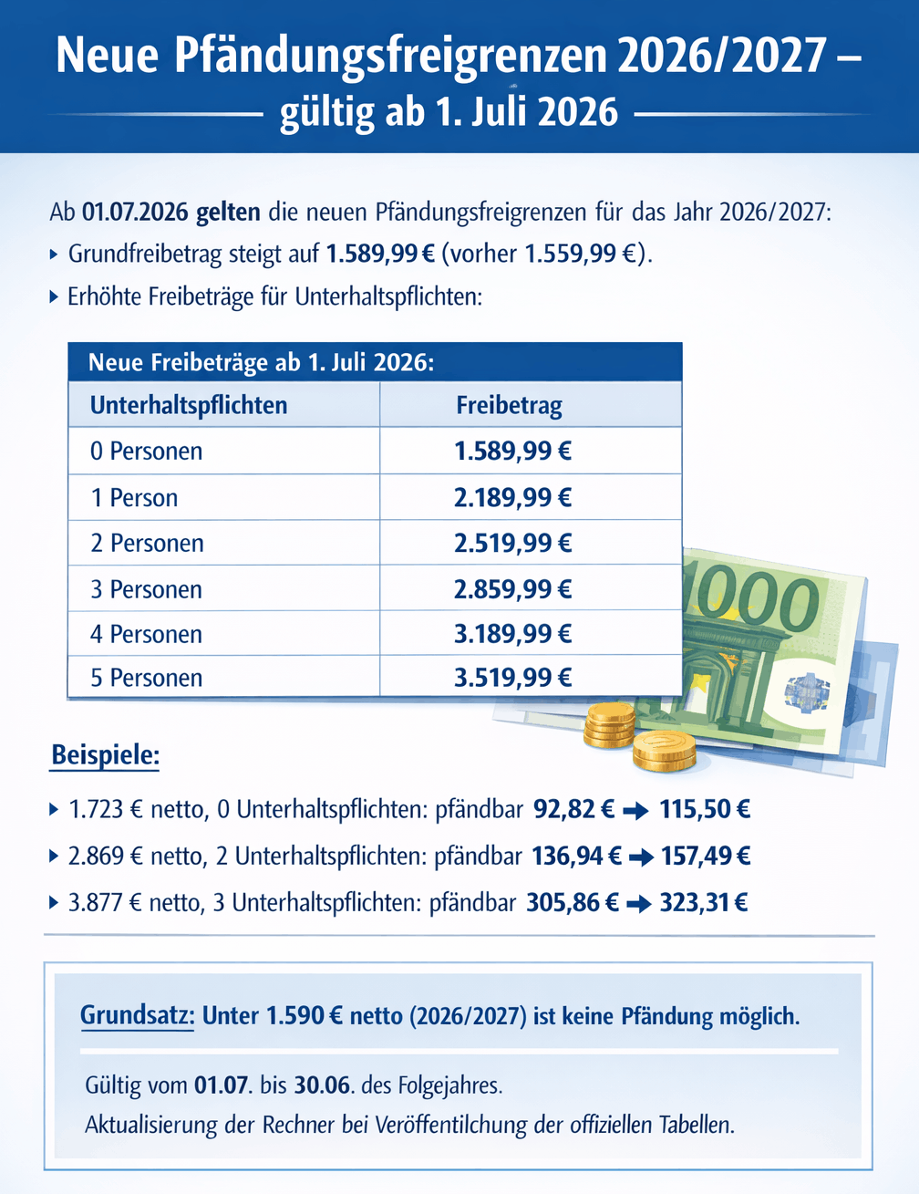 Neue Pfändungstabelle 2026/2027 (gültig ab 01.07.2026)